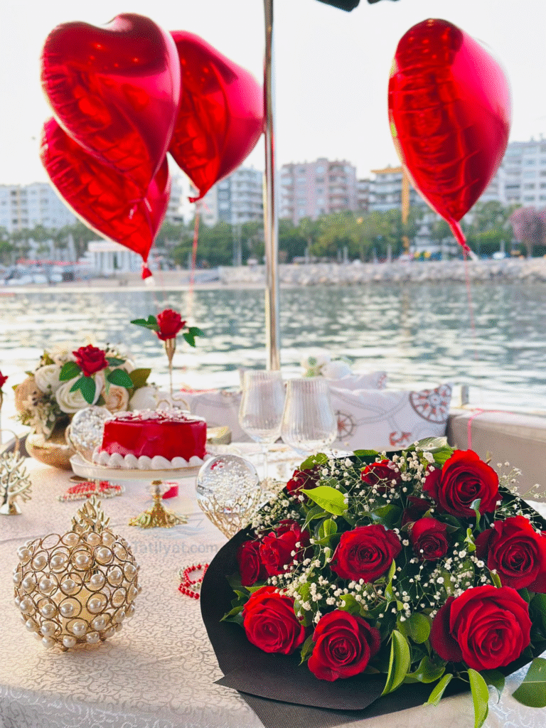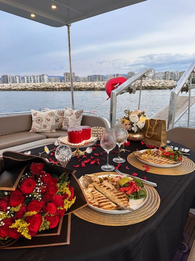 Mersin’de sürpriz evlilik teklifi yapmak isteyenler için denizin üstünde romantizmin en özel hali! Mum ışıkları, çiçeklerle süslenmiş masa, gün batımı ve profesyonel ekibimizle hayalinizdeki “Evet” anını sizin için planlıyoruz. TatilYat ile teknede evlilik teklifi, bir ömür unutulmayacak bir anıya dönüşüyor.